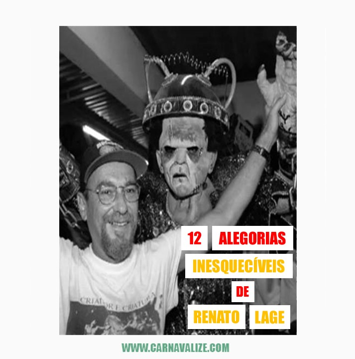 Numa homenagem ao rei da forma, nós separamos 12 alegorias que entraram para história do carnaval com a assinatura desse grande artista. São tantas esculturas, desenhos, personagens inesquecíveis, que foi um verdadeiro desafio escolher apenas doze. Tentamos então abranger o máximo de agremiações diferentes por onde Renato passou fazendo uma cronologia quase completa de seu estilo, confira: