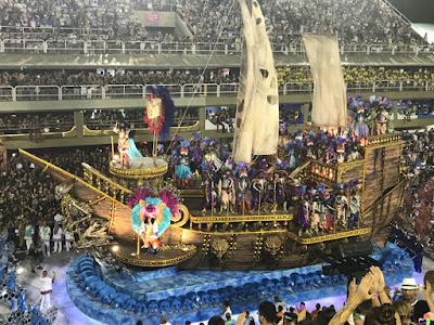 | A quarta alegoria da Portela trouxe um lindo barco e pessoas na base, coreografando as ondas do mar (Foto: Felipe de Souza) |
