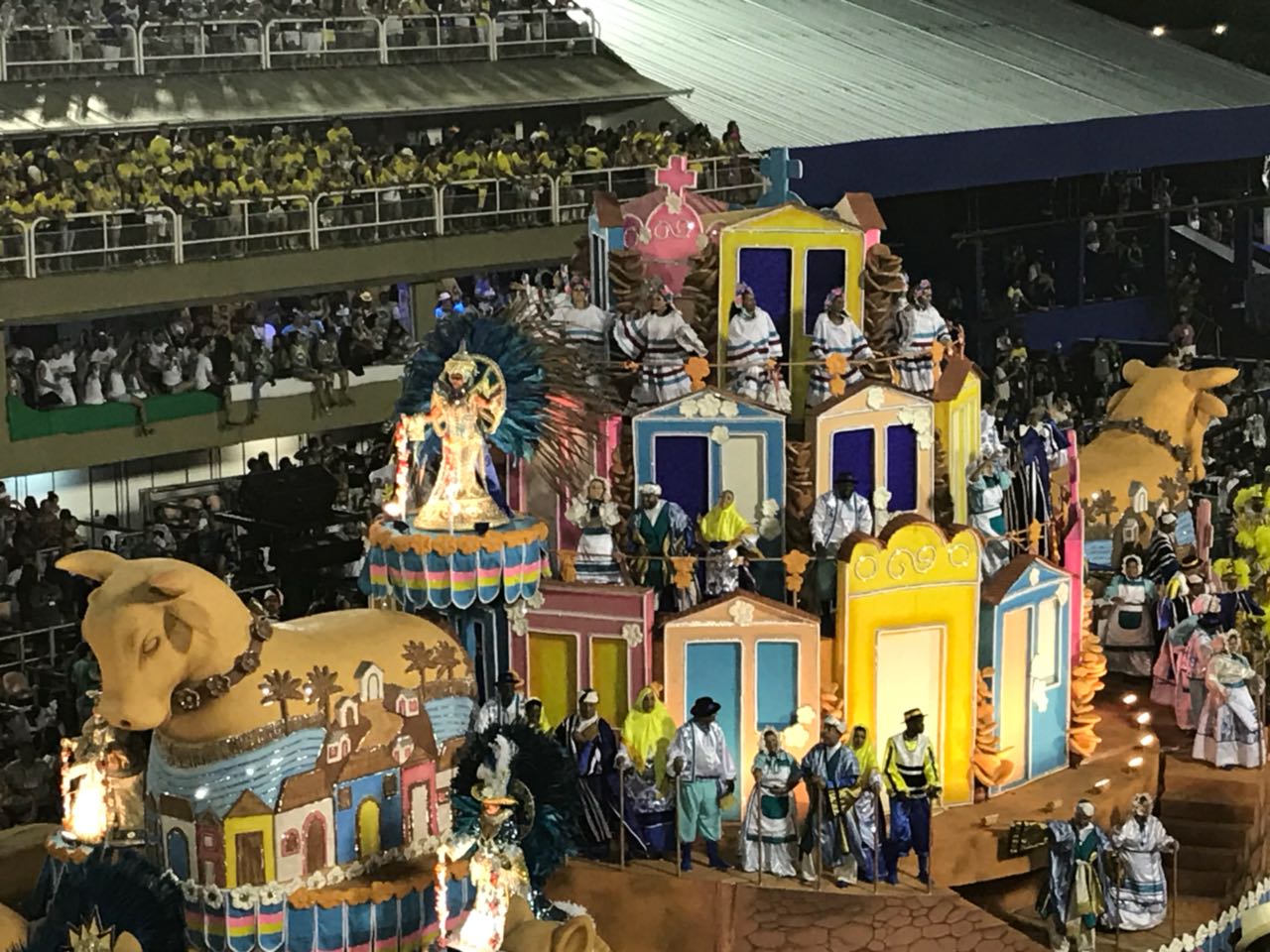 O conjunto alegórico da Professora passou muito bem e trouxe coreografias de efeito nos carros, que vieram com uma volumetria mais enxuta, como já é do feitio dos carnavais de Rosa. O segundo carro, um tatu, apresentou problemas de acabamentos nas laterais. As fantasias eram muito bonitas e a paleta de cores trabalhou muito bem o azul e o branco da escola de Oswaldo Cruz e Madureira. O enredo foi simples mais muito bem desenvolvido e amarrado, com uma forte crítica social que apareceu no último carro.