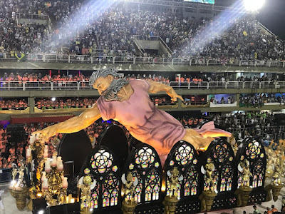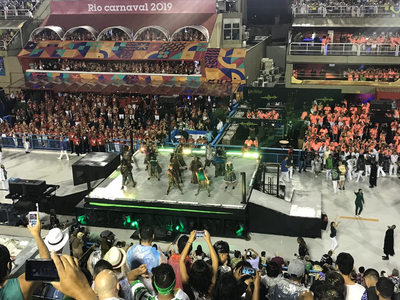 | Comissão de frente do Império Serrano se apresentou em cima de um tripé. |