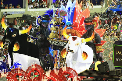 No Rio, o samba fez escola e virou dos maiores espetáculos da terra. Mas bem longe das praias de água salgada e do litoral, uma outra manifestação cultural se tornou um dos maiores festejos do Brasil. Em Parintins, as tradicionais festas do “boi bumbá” ganharam aspectos espetaculares e protagonismo em meio ao cenário cultural do país. Em julho, quando os tambores do samba-enredo estão longe da avenida, o Brasil ouve ecoar as toadas dos bois Garantido e Caprichoso. A ligação de troca entre os dois espetáculos é histórica, foram os parintintins os responsáveis por difundir as esculturas articuladas e os movimentos surpreendentes nas alegorias. Até hoje, equipes da ‘Ilha da Magia’, como é conhecida Parintins, trabalham na festa em diversos barracões em Rio e São Paulo, dando vida às esculturas gigantescas. De cá, também saíram profissionais e artistas que brilham no Bumbodrómo.