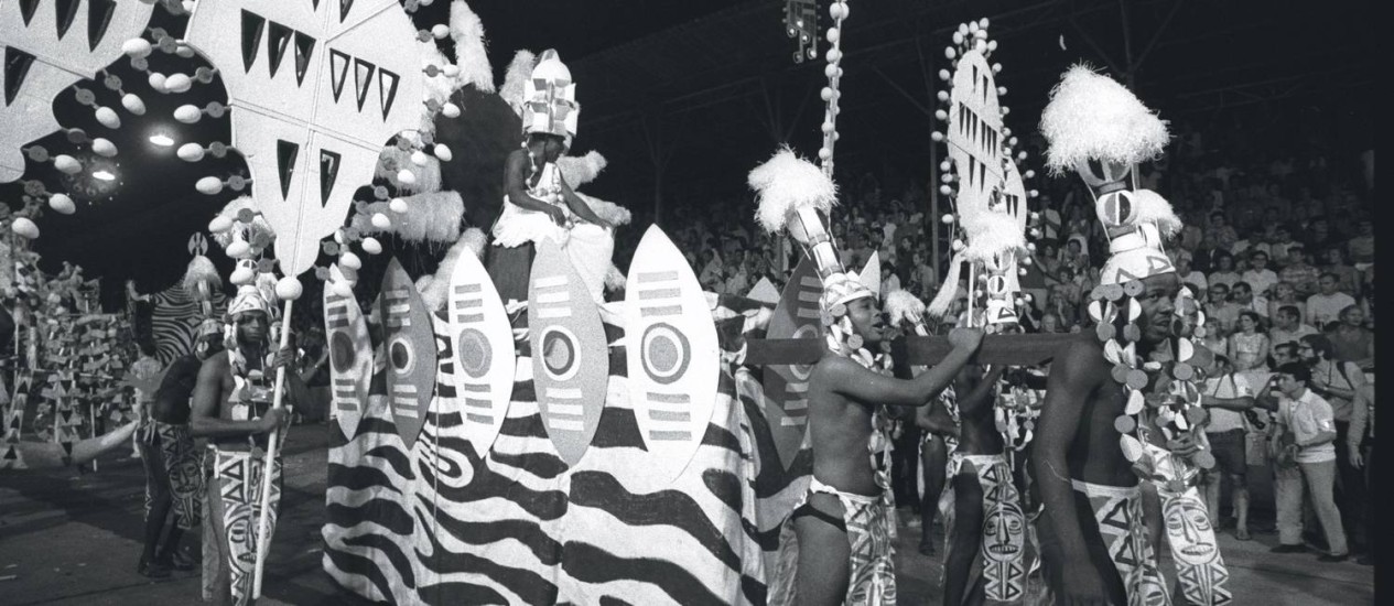 | A estética da máscara africana do diretor Abdias Nascimento lembra a do Salgueiro da época. |