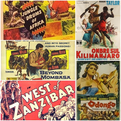 | Cartazes de filmes e séries hollywoodianos sobre o continente negro. |